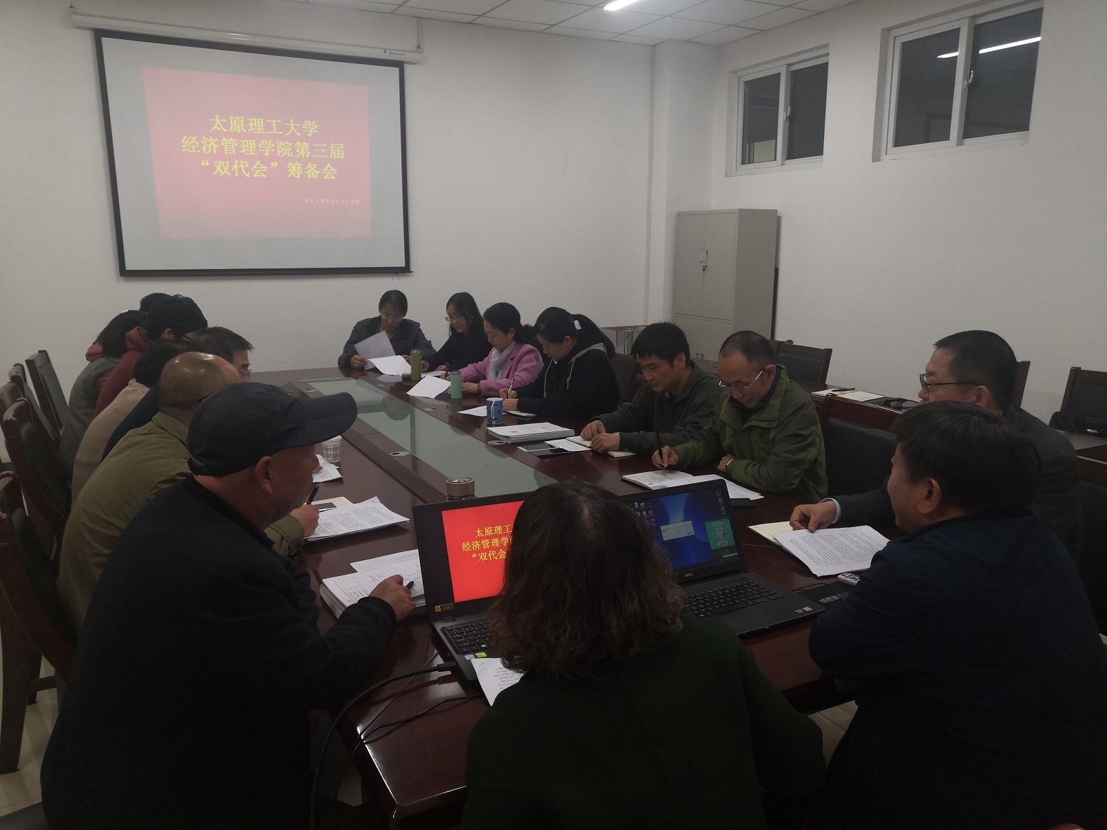 根据学校二级教职工代表大会暨工会会员代表大会有关工作的安排部署,11月12日下午,350vip8888新葡的京集团在明向校区经管楼二楼会议室召开学院第三届“双代会”筹备会,全体院领导、三办主任、工会委员、组织员参与会议,会议由院党委书记李玮主持。