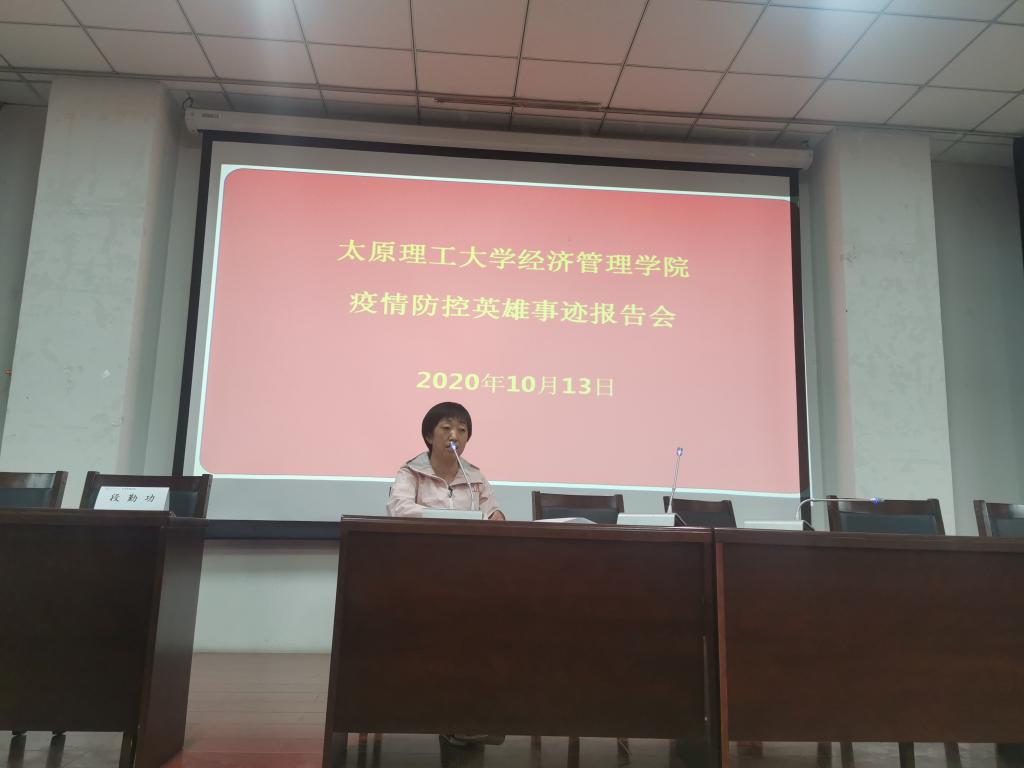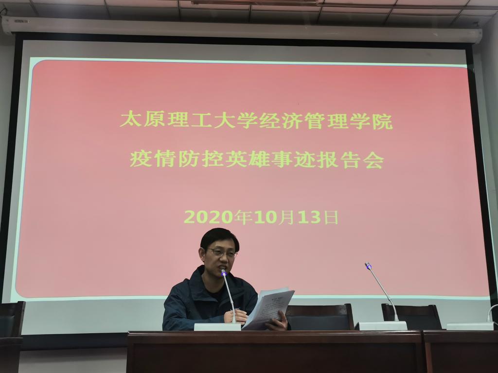 为弘扬伟大抗疫精神,深入开展爱国主义教育。2020年10月13日下午,350vip8888新葡的京集团经管学院在学院报告厅举办了疫情防控英雄事迹报告会,学院的老师全体参加,此次报告会邀请了我省赴湖北武汉抗疫一线的代表——省第十二批援鄂医疗专家组成员及武汉雷神山医院A15病区医疗三组组长、西山煤电总医院主任医师段勤功和普外科护士李雅丽,讲述他们的抗“疫”故事,分享他们的抗“疫”力量。