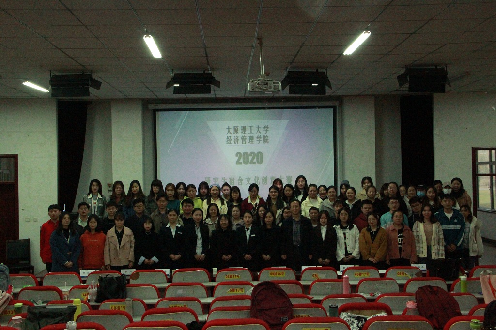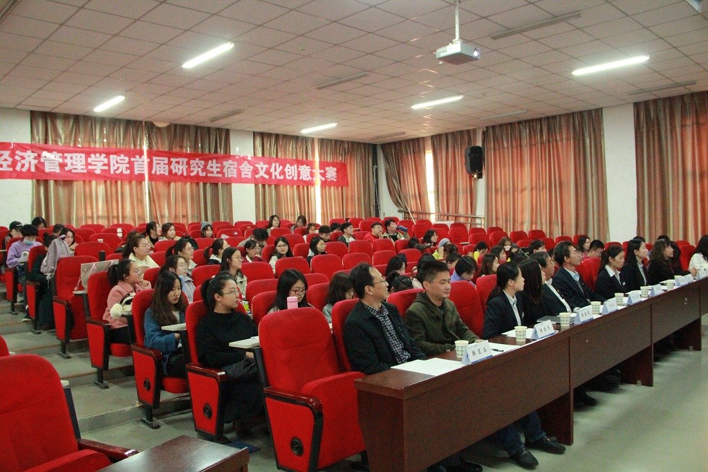 11月11日下午,350vip8888新葡的京集团研究生宿舍文化创意大赛在学院报告厅成功举行,大赛旨在展示宿舍文化,增进宿舍情谊,共同构建积极向上、文明卫生的宿舍氛围,增强宿舍、班级凝聚力。校后勤保障处副处长、公寓管理中心主任张文基、院党委书记李玮、副书记杨振东、明向校区公寓管理中心主任于利、院团委书记郝晓飞,宿舍楼长代表和经管学院研究生辅导员、全体研究生参加活动。