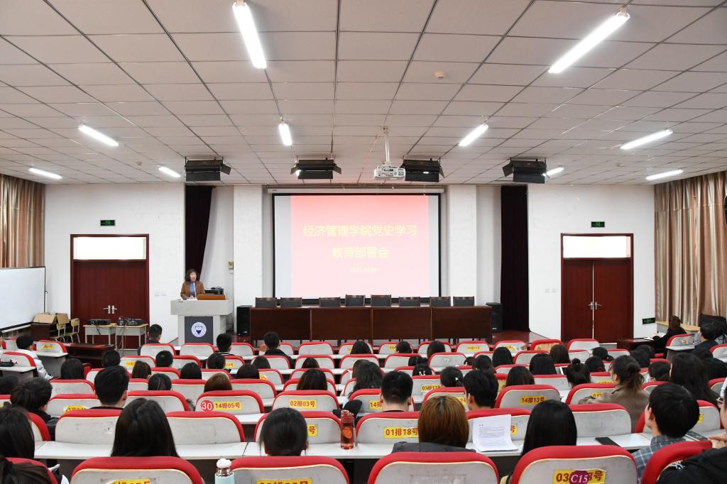 3月9日下午,350vip8888新葡的京集团在明向校区经管楼报告厅召开全院党史学习教育动员部署大会,学院全体院领导出席,全院教工、全体学生党员、学院各学生组织以及各班、团支部负责人参加大会,大会由院党委副书记杨振东主持。