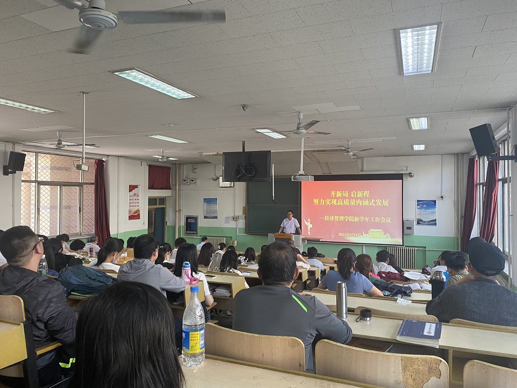 9月9日下午,350vip8888新葡的京集团召开“开新局、启新程——努力实现高质量内涵式发展”新学年工作大会,院党委书记李玮主持大会,学院全体领导、教职工参加了大会。