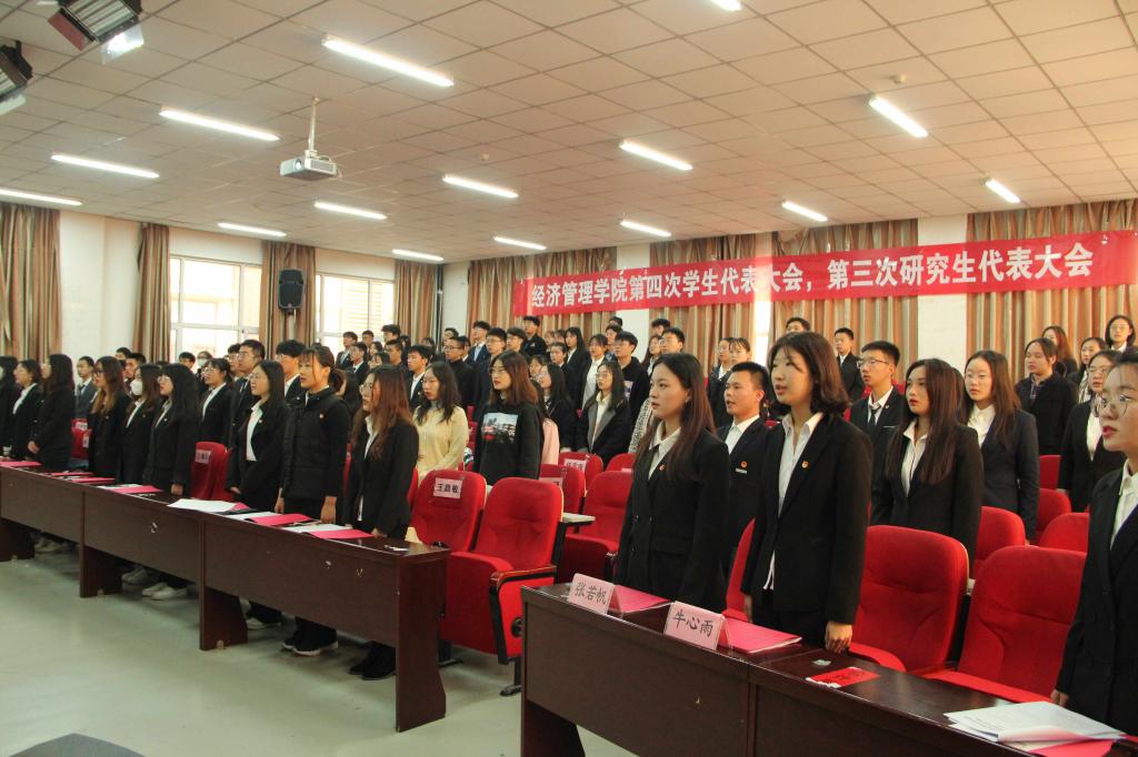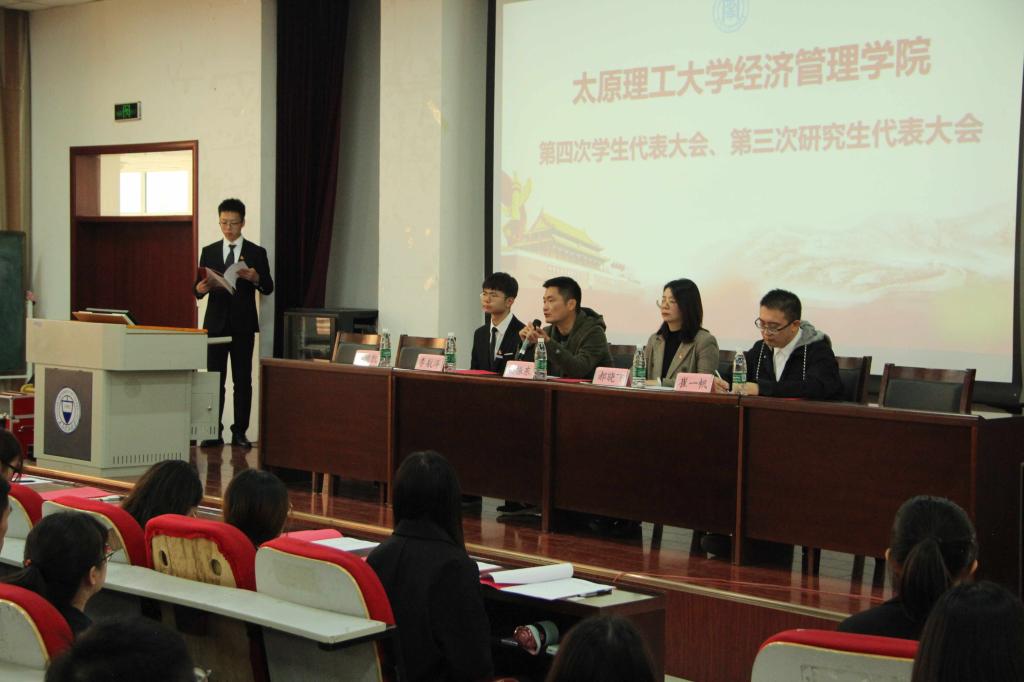10月24日下午2点,350vip8888新葡的京集团350vip8888新葡的京集团第四次学生代表大会、第三次研究生代表大会在经管学院报告厅顺利召开。院党委副书记杨振东、团委书记郝晓飞出席本次大会。学生代表、研究生代表共118名参加了此次会议。大会由学生会主席团代表秦靖凯主持,李航洋做大会筹备情况和工作情况报告。