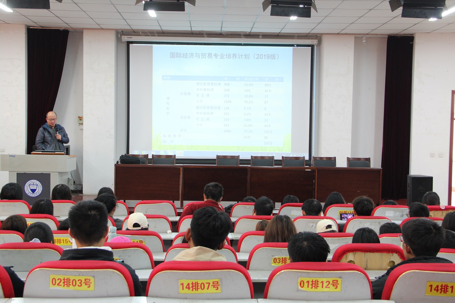 国际经济与贸易专业由何耀宇老师担任主讲老师,何老师介绍国贸专业的培养目标,通过对我院国贸专业毕业生就业状况介绍,为同学们拓宽了就业选择。何老师对新生提出三点要求:一是具备较为完备的知识结构,二是具备较为系统的能力结构,三是具备较为全面的素质结构。努力成为适应中国现代化建设需要的、具有全球视野和较为完备知识体系的应用型、复合型、创新型人才。