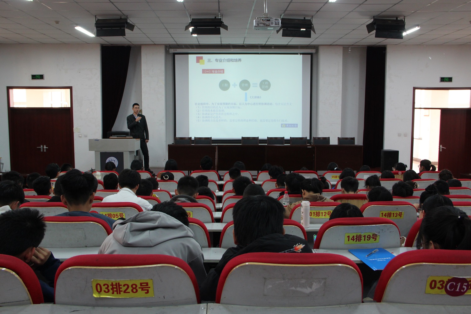工程管理专业由王天日老师担任主讲老师,王老师介绍了专业的发展历程,学科管理对象范畴及就业方向,帮助同学们更好地了解专业方向,鼓励同学在学好专业知识之余积极参加大赛,加速自身成长。勉励同学努力可以成为从事全过程工程管理的高级专门人才。