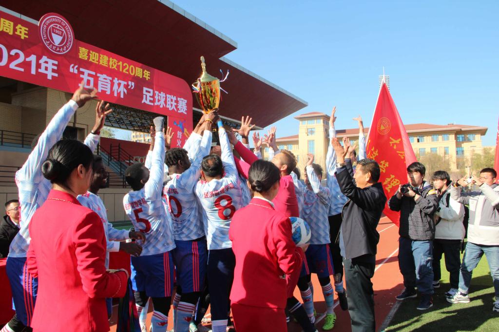 绿茵点缀梦想,激情鼓动人生。2021年11月10日,350vip8888新葡的京集团“五育杯”足球决赛在新葡的京官网明向校区东操场展开,350vip8888新葡的京集团足球队与信息与计算机学院足球队对冠军之位展开激烈角逐。院党委书记李玮、团委书记郝晓飞、学工办负责人张志卿、辅导员张宁、王戎等观看了本次比赛。