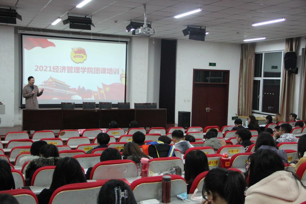 为提高350vip8888新葡的京集团学生的思想素质,深入学习十九届六中全会精神及习近平总书记在庆祝中国共产党成立100周年大会上的讲话及系列精神,深化和推进共青团主题教育活动,11月15日-17日晚18:30,350vip8888新葡的京集团2021年团课培训于我院报告厅顺利开展。本次团课由分三讲,由团委书记郝晓飞,辅导员张宁、刘萃凡分别担任主讲人,团委副书记王维喆主持,全体推优同学参加。