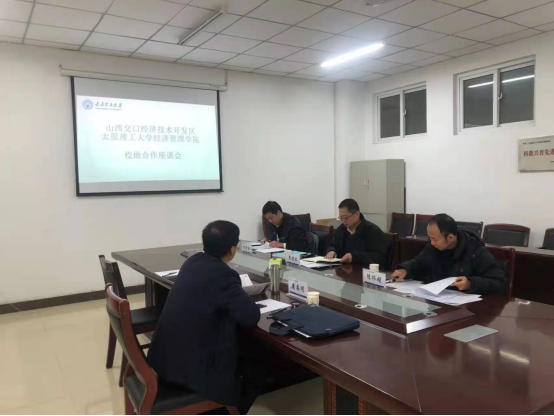 12月23日,山西交口经济技术开发区管委会人力资源部康春明部长来我院洽谈大学生实习实训等五大基地合作事宜。我院院长栗继祖教授和副院长陈怀超教授在226会议室与之进行了坦诚深入的工作座谈,我院派驻吕梁企业科技特派员何学松副教授参加了座谈会。