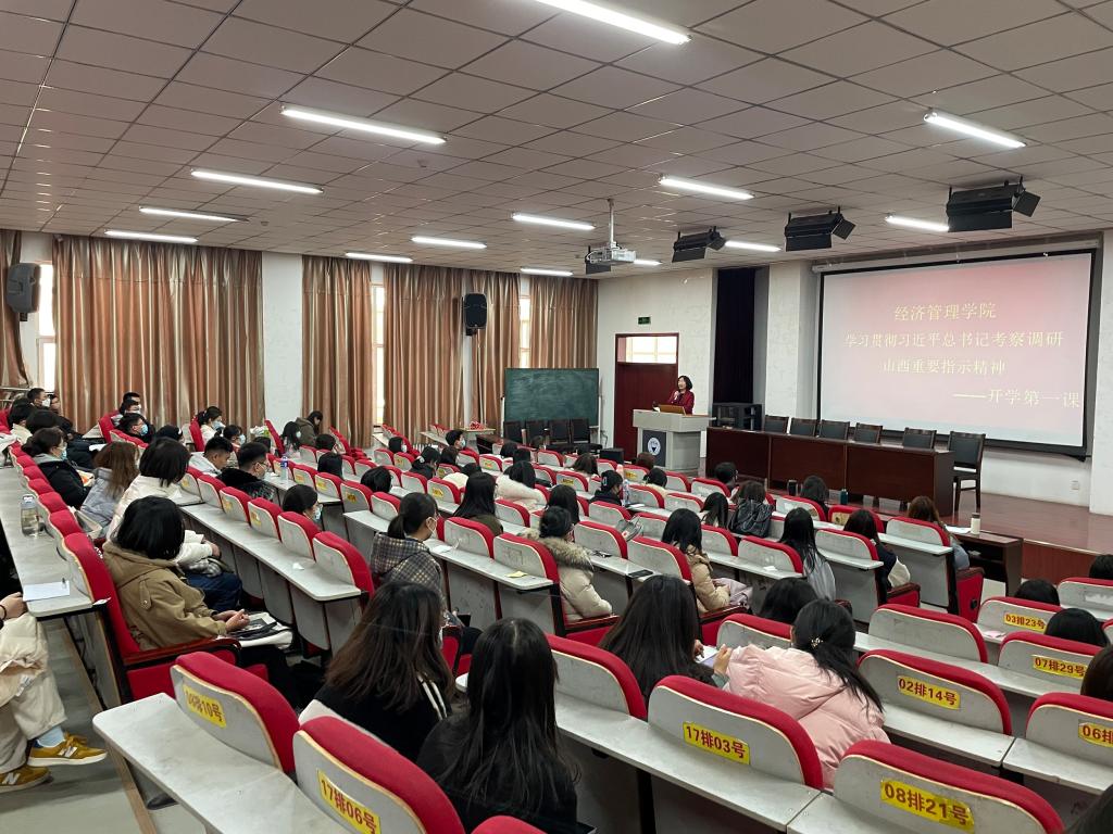2月23日中午,院党委书记李玮在学院报告厅为三年级研究生讲授“开学第一课”,她向同学们传达了习近平总书记考察调研山西重要指示精神和重大意义。她指出,习近平总书记在考察调研期间作出的一系列重要指示,高瞻远瞩、内涵丰富、要求明确,是对全方位推动高质量发展的把脉定向,是对山西如何突围突破的战略指导,是山西落实党中央决策部署的根本遵循。她希望广大学生深入学习习近平总书记“我将无我、不负人民”的精神境界和实事求是、求真务实的工作作风,在即将毕业走向社会之际,胸怀“两个大局”,心怀“国之大者”,将个人发展融入到国家民族的事业中去,运用经济学、管理学知识,贯彻新发展理念,在以“双碳”目标为牵引深化能源革命、推动山西资源型经济转型发展的广阔天地中大显身手,创造一番作为、实现自我价值,不辜负习近平总书记和党中央的厚爱与期许。