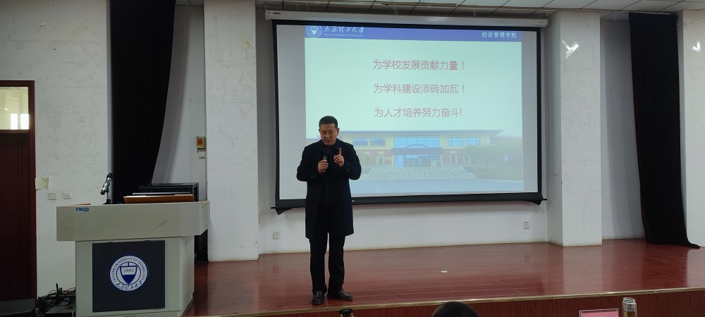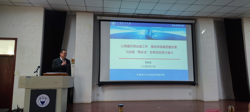 院长栗继祖作了题为《以党建引领全面工作 推动学院高质量发展 为实现“两步走”宏伟目标努力奋斗》的报告,他在报告中回顾总结了学院近年来的的发展成果,深度剖析了存在的问题和不足,详细介绍了未来发展谋篇布局的思路步骤,完整阐述了学院扬帆起航的规划举措。他表示,新形势下挑战和机遇并存,需要全院上下齐心协力,在已有成绩的基础上,励精图治、奋发有为,共同推动学院各项工作大步向前,努力实现学院“两步走”的奋斗目标,为学校“两步走”战略的实施贡献经管力量,为建设高水平学科添砖加瓦,为培养高素质人才努力奋斗。