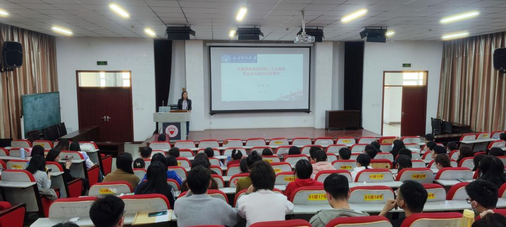 刘振霞教授做了题为“全面贯彻落实党的二十大精神,努力成为新时代好青年”的报告,她带领全体研究生一起学习了党的二十大报告,全面领会党的二十大精神,准确理解中国式现代化的丰富内涵。她指出,中华民族伟大复兴正处于关键时期,为广大青年成长成才提供了广阔发展空间,也决定了新时代中国青年是实现中华民族伟大复兴的关键一代,当代中国青年生逢其时,应高举中国特色社会主义伟大旗帜,全面贯彻习近平新时代中国特色社会主义思想,踔厉奋发、勇毅前行、团结奋斗,为全面建设社会主义现代化国家、全面推进中华民族伟大复兴而团结奋斗。