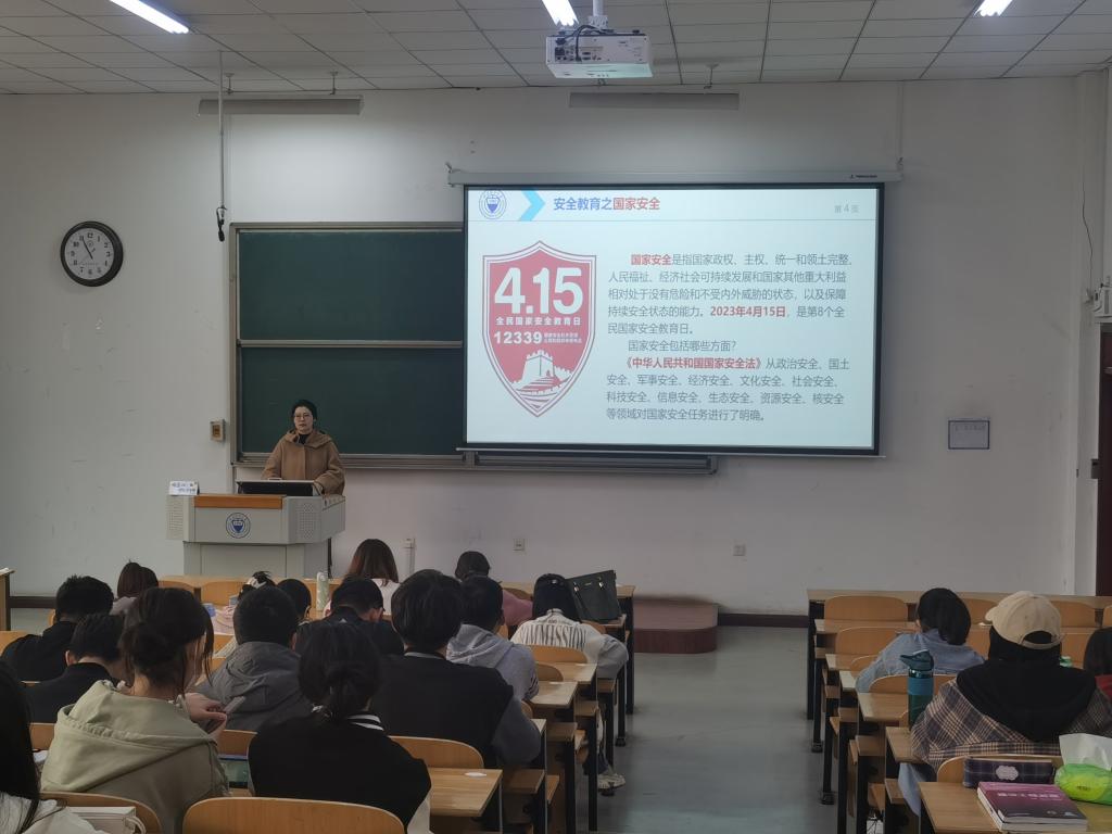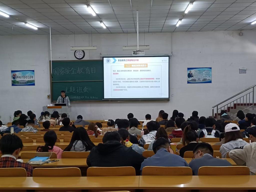 除此之外。辅导员老师深入学生课堂,以班会、宣讲会、收听收看专家访谈直播等形式从国家安全与《国家安全法》、国家安全教育日的由来、国家安全与人民的安全、国家与公民应如何维护国家安全等方面为同学们展开详细介绍。会上,每位同学全神贯注的聆听宣讲,对于重点讲解的知识点,都认认真真的做好笔记,同时都积极参与国家安全知识竞答活动,将自己在会上学到的知识进行巩固。