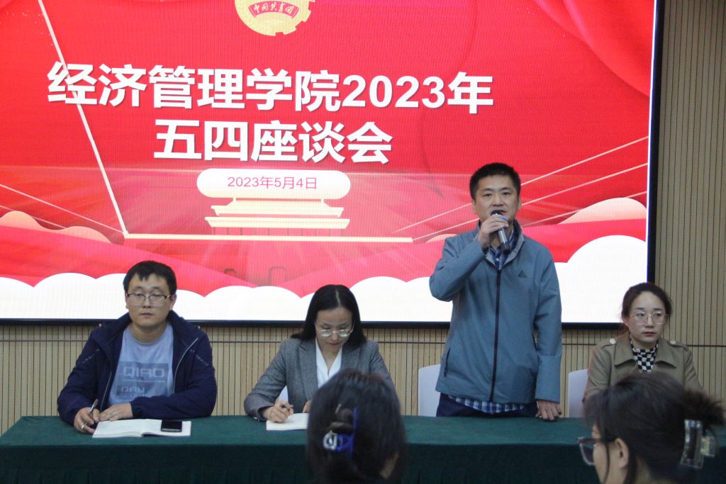 座谈会上,杨振东向同学们介绍了此次座谈会的意义,在纪念五四运动104周年之际,要牢记习近平总书记殷切嘱托,弘扬“五四”精神,志存高远、脚踏实地,刻苦学习、苦练本领,将听党话、跟党走的精神融入到日常学习和生活中,积极发扬青年人的朝气和奋斗精神,展现经管学子的青春风采。