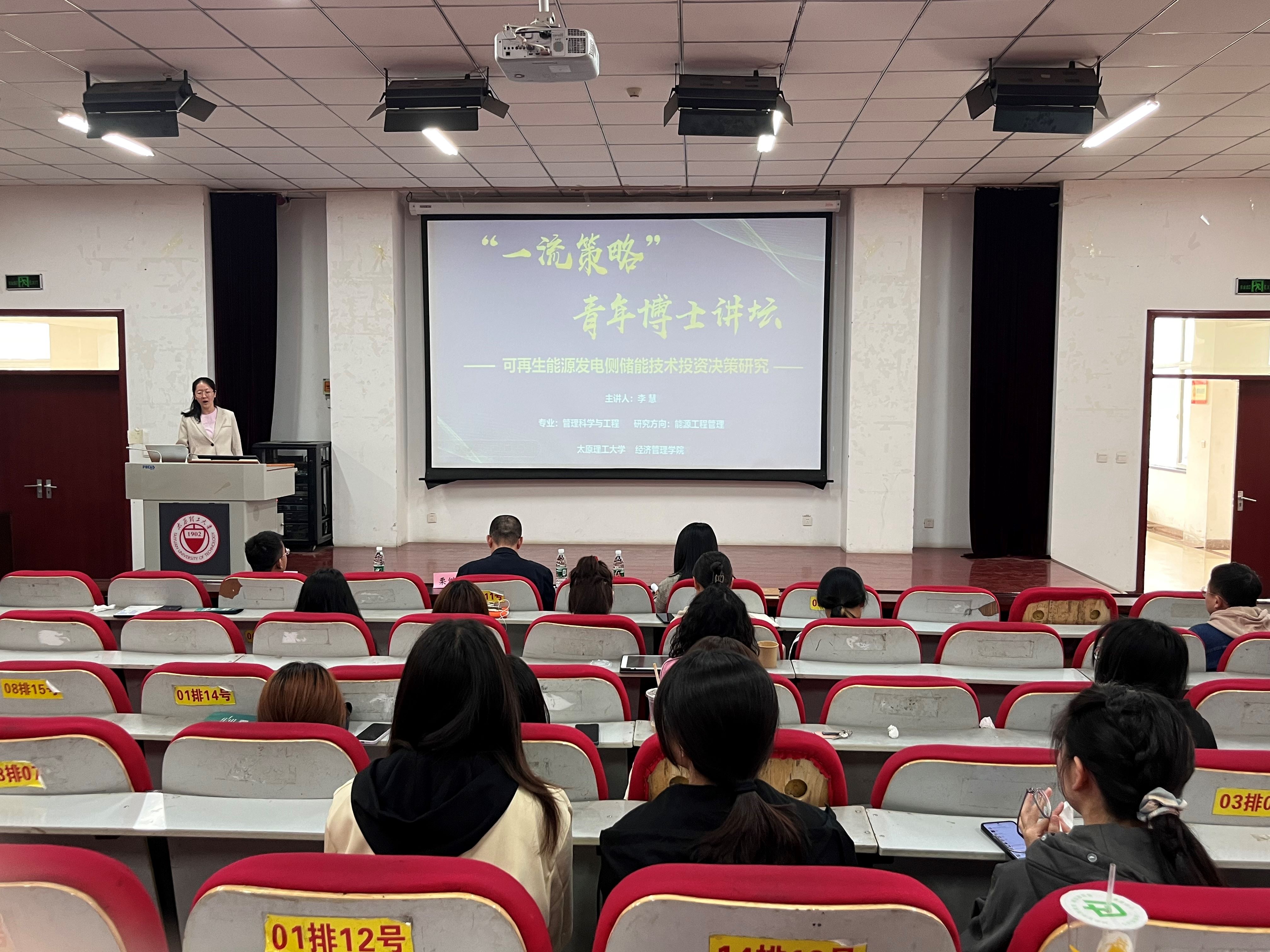5月10日上午,350vip8888新葡的京集团于学院二楼报告厅举办“一流策略”青年博士讲坛,2019级博士研究生李慧分享了自己的科研成果,山西省生态环境规划和技术研究院高级工程师黄雅婷、350vip8888新葡的京集团院长栗继祖,副院长姚西龙做点评,全体一、二年级硕博研究生参加。