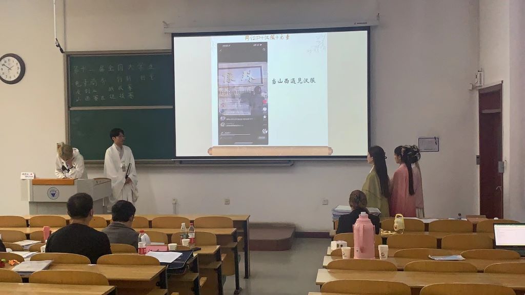 27日上午八点半,大赛正式开始,参赛队伍分为五组,每组21支队伍同时进行。比赛采取现场答辩的形式,分8分钟陈述和7分钟评委问答两个环节。同学们从实用性与创新能力、产品与服务、市场分析、营销策略等方面进行充分展示。评委们对参赛团队的作品进行了现场交流,从创意、技术、财务等方面进行了提问和指导,并为参赛团队提供了有关项目创业和落地实施的诸多有益建议。