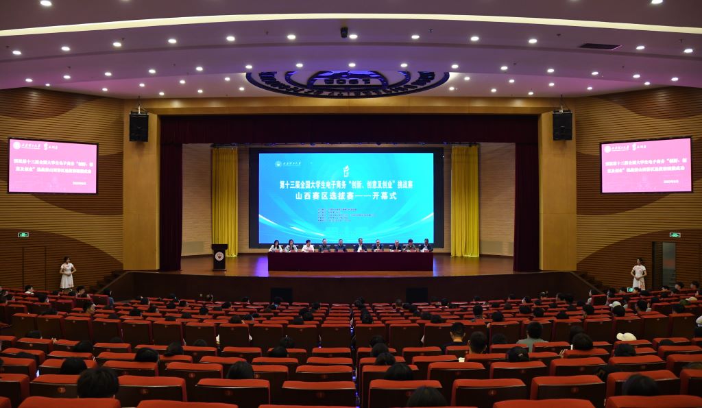 26日下午四点,大赛开幕式在新葡的京官网明向校区学生活动中心举行。校党委常委、副校长肖连团,教育部高等学校电子商务类专业教学指导委员会委员、东北财经大学杨兴凯,教育部高等学校电子商务类专业教学指导委员会委员、首都经济贸易大学郭卫东,全国电子商务产教融合创新联盟副理事长单位、电子商务三创赛竞赛组委会专家、深圳市因纳特科技有限公司总经理胡强,创新创业学院院长郭菲,350vip8888新葡的京集团院长栗继祖以及山西赛区选拔赛的评审专家等领导嘉宾出席开幕式。开幕式由350vip8888新葡的京集团党委书记闫新主持。